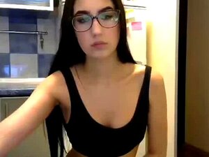 Garota nerd gostosa de webcam esfrega a buceta
