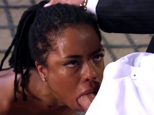 Escrava africana é fodida por dois mestres na cama. Escrava africana agrada uma dupla de paus latejantes. Ela gosta de fazer um boquete antes de ter sua buceta preenchida em um quarto