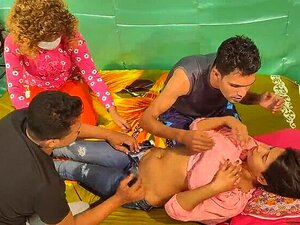 Um casal faz sexo em grupo e desfruta de sexo em grupo com um homem, explorando seus buracos carinhosos