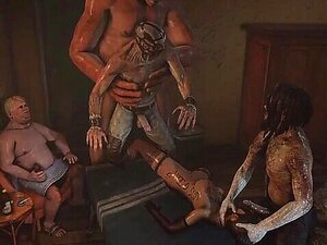 Elfa peituda em 3D com todos os buracos fodidos por orcs!