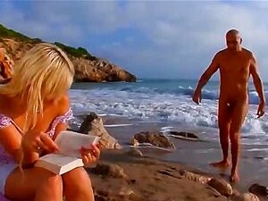 Sexo na praia pública com uma loira sexy