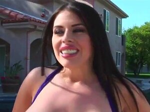 Sexo interracial quente com a peituda Daphyne Rosen. A peituda Daphyna Rosen brinca à beira da piscina e tem um pau preto na mente. Ela o leva para dentro de casa e chupa seu pau enorme. Seu pau enorme bate fundo na buceta raspada dela e ela adora seu pau