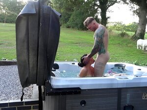 sexo ao ar livre apaixonado na banheira de hidromassagem no fim-de-semana maroto