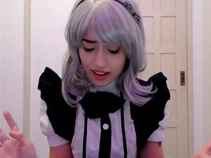 Garota de cosplay de empregada chupando e implorando ao chefe